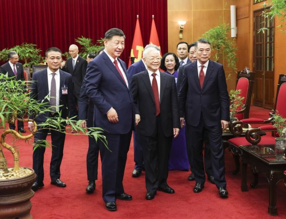 بعد فترة وجيزة من وصول شي إلى هانوي يوم الثلاثاء، أقام له ترونغ مراسم استقبال كبيرة في قصر الرئاسة قبل توجههما إلى مقر اللجنة المركزية للحزب الشيوعي الصيني لإجراء محادثات.