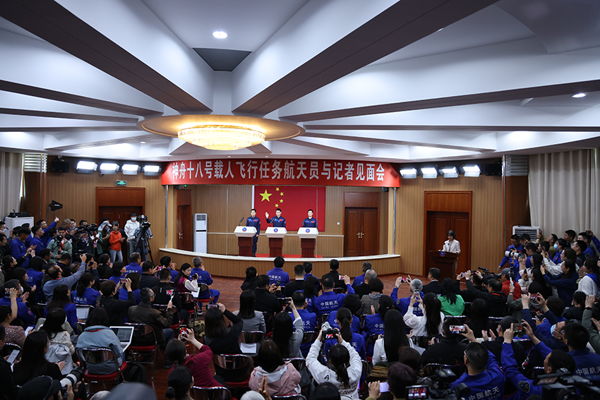 رواد فضاء مهمة “شنتشو-18” الصينية يلتقون الصحافة
