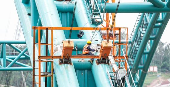 موقع بناء جسر طريق قوييانغ-بينغتانغ السريع في جنوب غربي الصين