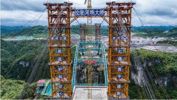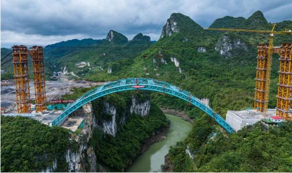 في الصور الملتقطة موقع بناء جسر نهر لامي على طول طريق قوييانغ-بينغتانغ السريع في مقاطعة قويتشو بجنوب غربي الصين. وشهد الجسر، الذي يبلغ إجمالي طوله 206 أمتار، إغلاق أضلاع قوسه يوم الجمعة الماضي.