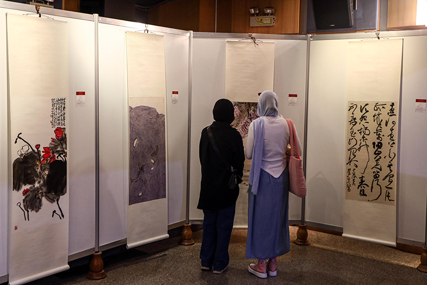 في الصورة الملتقطة فتاتان تشاهدان لوحات في معرض أقيم لفنانين من مقاطعة شاندونغ شرقي الصين تحت عنوان “الاحتضان بين حضارة النهر الأصفر والحضارة المصرية” في القاهرة. ونظمت المعرض الفني، إدارة الثقافة والسياحة بمقاطعة شاندونغ الصينية والمركز الثقافي الصيني بالقاهرة، بهدف تعزيز التبادل الثقافي بين شعبي الحضارتين القديمتين.