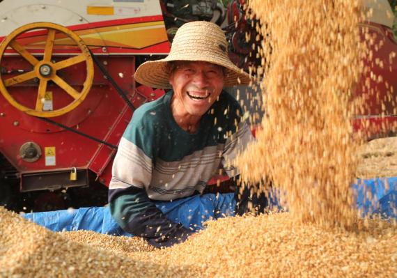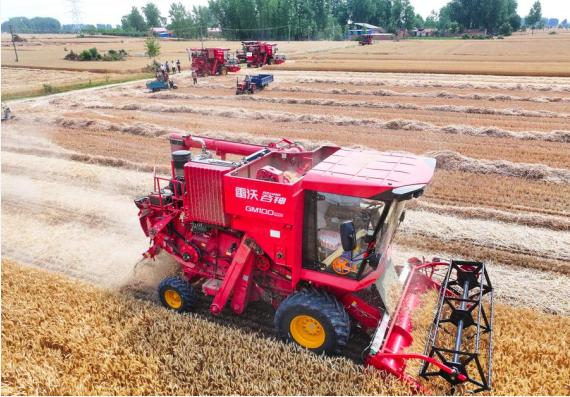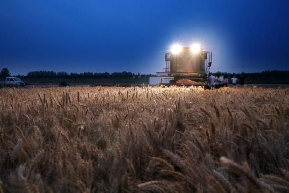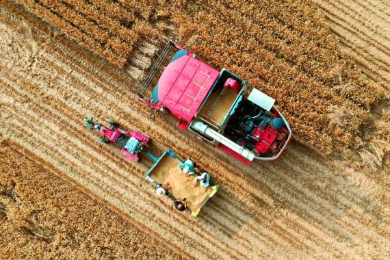 حصاد القمح في إحدى المناطق الرئيسية المنتجة له بالصين