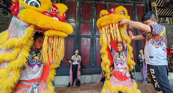أطفال يمارسون رقصة الأسد بجنوبي الصين