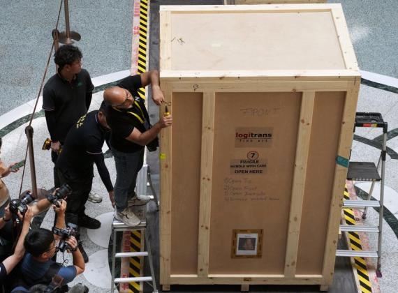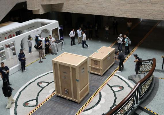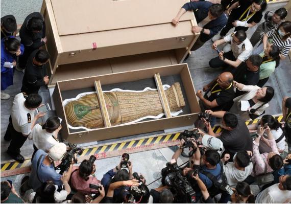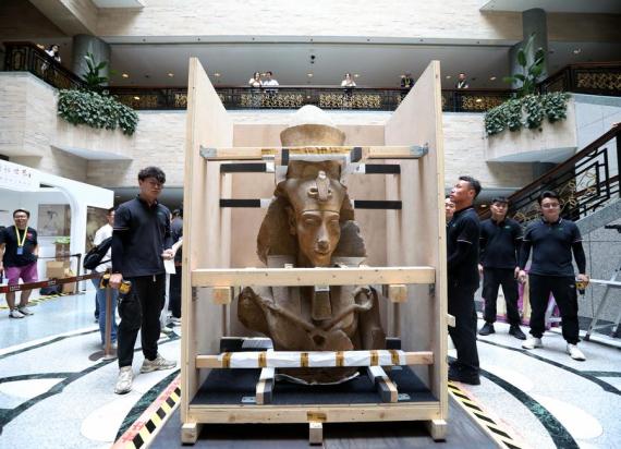 في الصور الملتقطة صندوقان يحتوي أحدهما على تمثال نصفي للملك المصري القديم إخناتون والآخر على تابوت فرعوني ملون، في متحف شانغهاي، حيث من المقرر إطلاق معرض بعنوان “على قمة الأهرامات: المعرض الكبير للحضارة المصرية القديمة” في يوم 18 يوليو القادم في المتحف. وسيعرض المعرض 492 مجموعة مؤلفة من 788 قطعة أثرية نفيسة من مختلف فترات مصر القديمة. ويأتي 95 في المائة من هذه الآثار لأول مرة إلى آسيا، فيما سيمتد المعرض حتى أغسطس عام 2025.