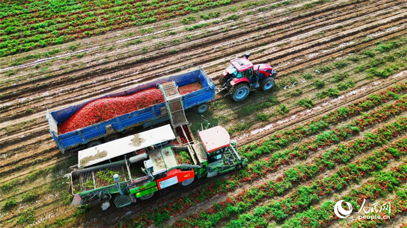 في شهر أغسطس من كل عام، تبدأ الطماطم المعالجة التي يزرعها تشانغ بين في النضج. وفي غضون شهرين، يقوم بنقل محصوله على الشاحنات إلى مصنع منتجات الطماطم. حيث تخضع الطماطم لعمليات معالجة مختلفة مثل التنظيف والتعقيم، ثم تصنيعها إلى منتجات متنوعة، يتم تسويقها في السوق المحلية والدولية.