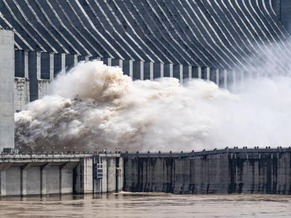 تصريف مياه الفيضانات في سد الخوانق الثلاثة