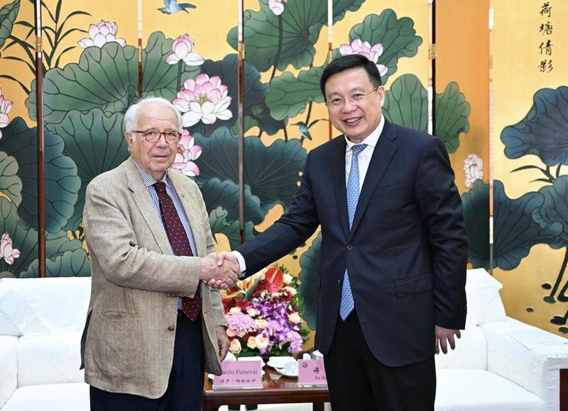 التقى فو هوا، رئيس وكالة أنباء ((شينخوا))، الرئيس التنفيذي لمجموعة ((كلاس إيديتوري)) للإعلام باولو بانيراي.