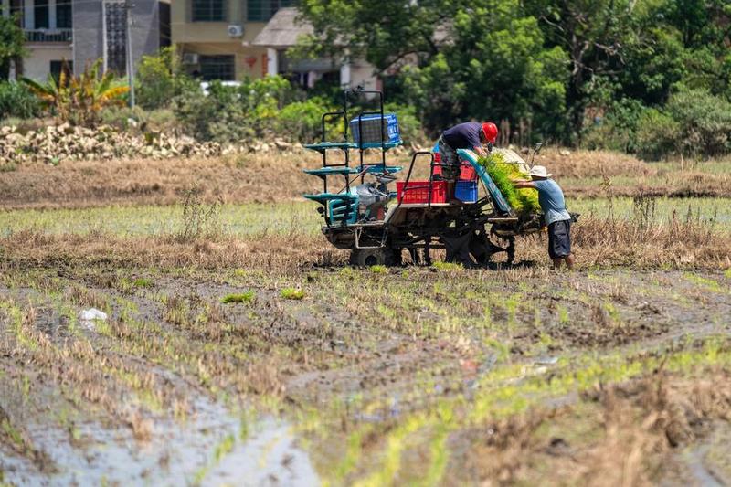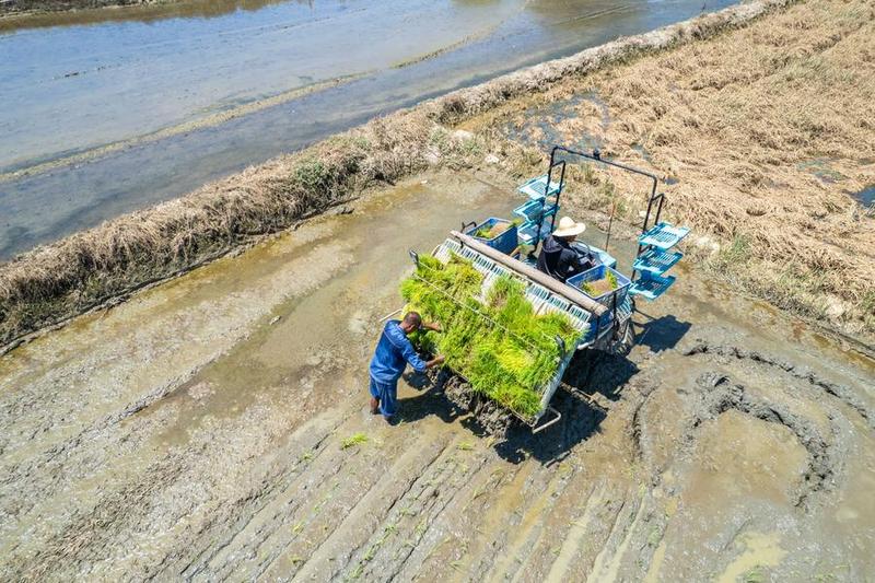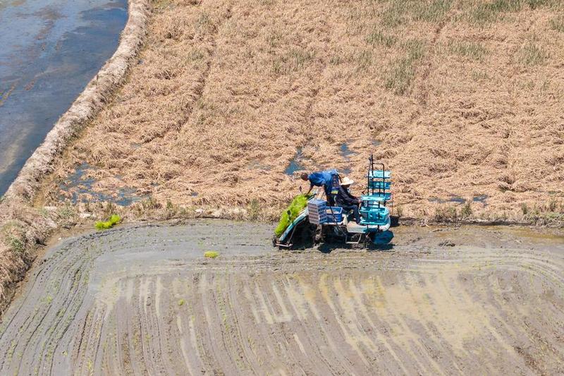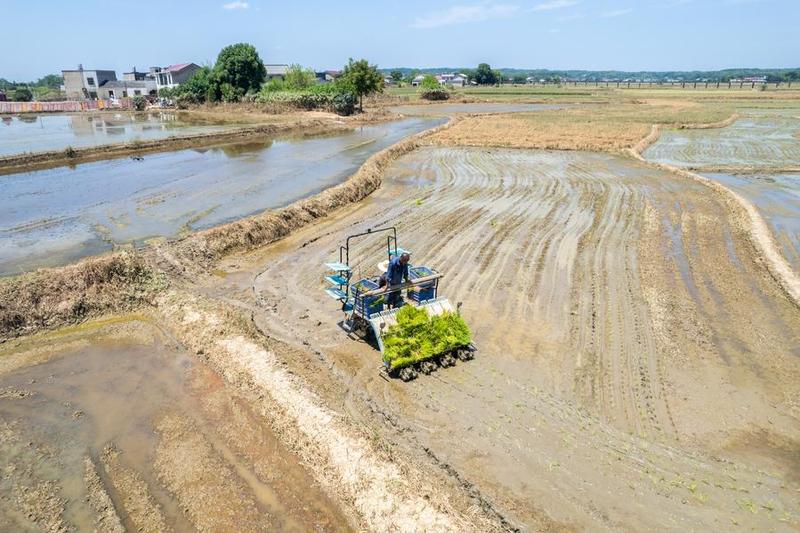 زراعة شتلات الأرز بعد الفيضانات في وسط الصين