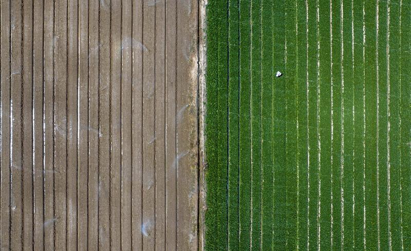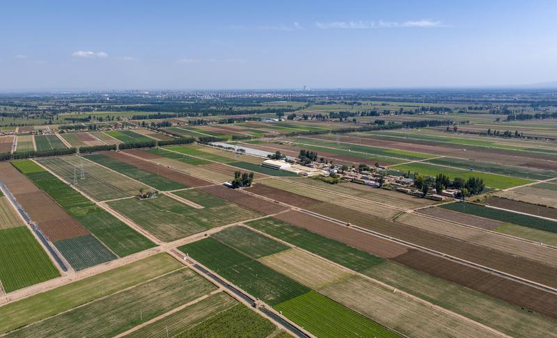 في الصور الملتقطة جوا مزرعة للخضروات في بلدة تشيويجينغ بمدينة تشينغتونغشيا في منطقة نينغشيا ذاتية الحكم لقومية هوي بشمال غربي الصين.