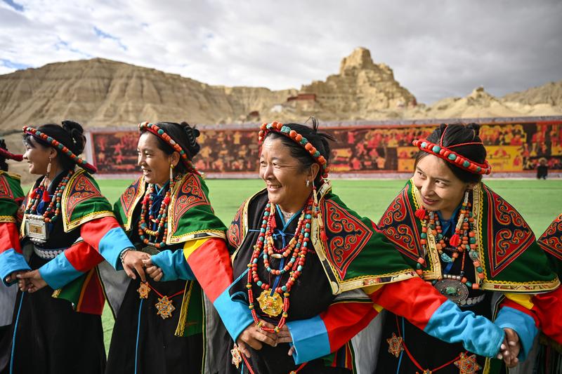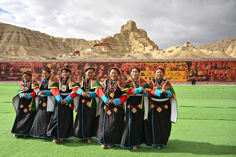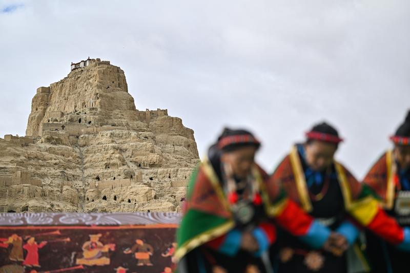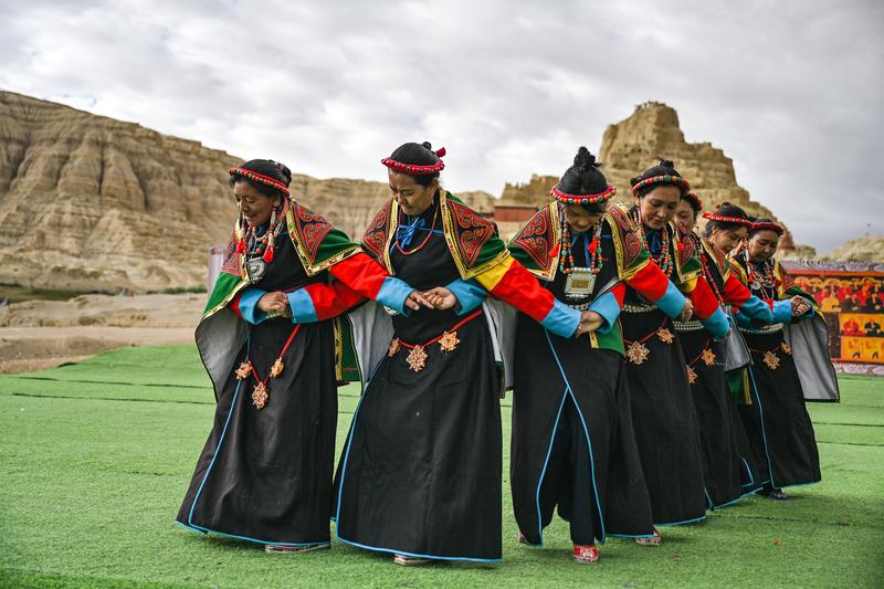 في الصور الملتقطة سيدات محليات يؤدين رقصة “شيوان” بالقرب من أطلال مملكة قوقه في محافظة تساندا بولاية نغاري بمنطقة شيتسانغ ذاتية الحكم بجنوب غربي الصين. وتعد هذه الرقصة التي تمزج بين الكلام والغناء والرقص، تراثا ثقافيا تبتيا من مملكة قوقه القديمة. وقد تم إدراجها في قائمة التراث الثقافي غير المادي الوطني في عام 2008.