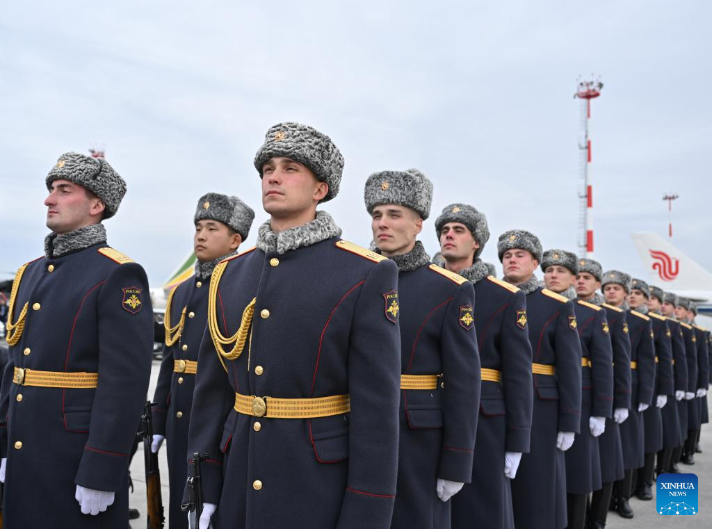 ورحب المسؤولون الروس بالرئيس شي في المطار. واصطف حرس الشرف على جانبي سجادة حمراء لتحية الزعيم الصيني، الذي لقي أيضا ترحيبا وحفاوة تقليدية من شبان روس يرتدون الأزياء الوطنية.