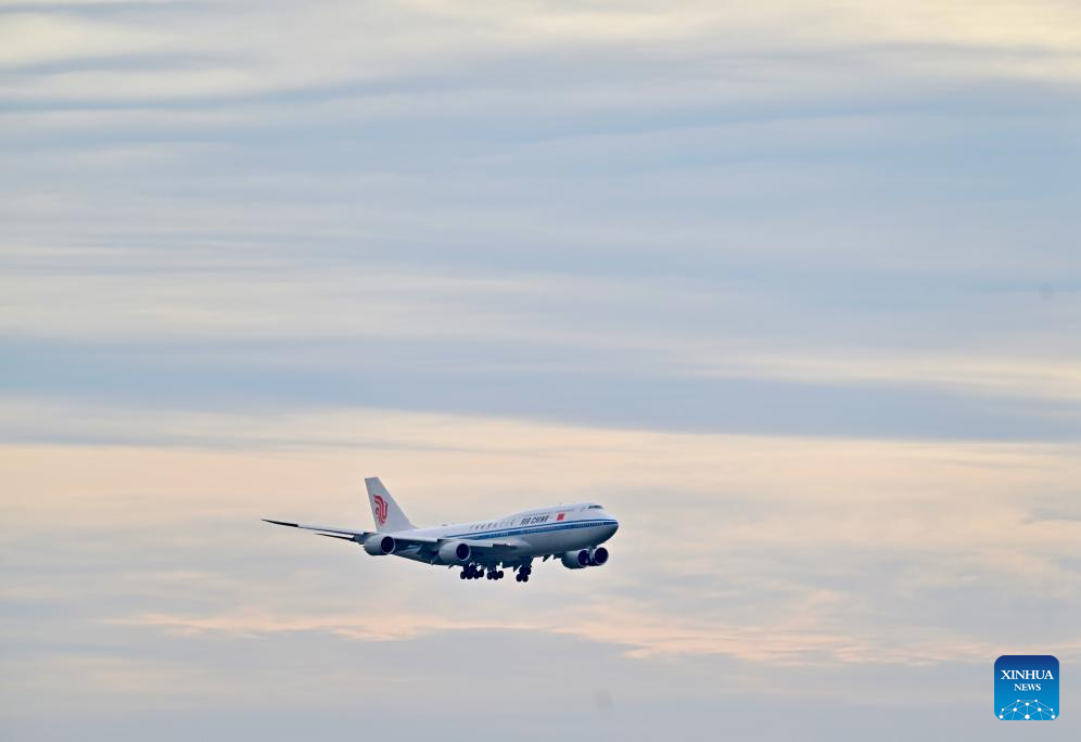 وشوهدت طائرة مقاتلة روسية ترافق طائرة الرئيس شي.