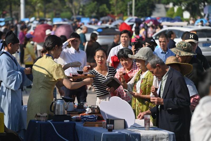 في الصورة الملتقطة أناس يتذوقون شاي ليوباو خلال كرنفال سياحي ثقافي في مدينة ووتشو بمنطقة قوانغشي ذاتية الحكم لقومية تشوانغ جنوبي الصين. وشاي ليوباو شاي صيني داكن يتميز برائحته القوية والممتدة وتأثيراته الطبية، ويتمتع بتاريخ يزيد عن 1500 عام. وانطلق كرنفال السياحة الثقافية في قوانغشي 2024 هنا يوم الثلاثاء المنصرم.