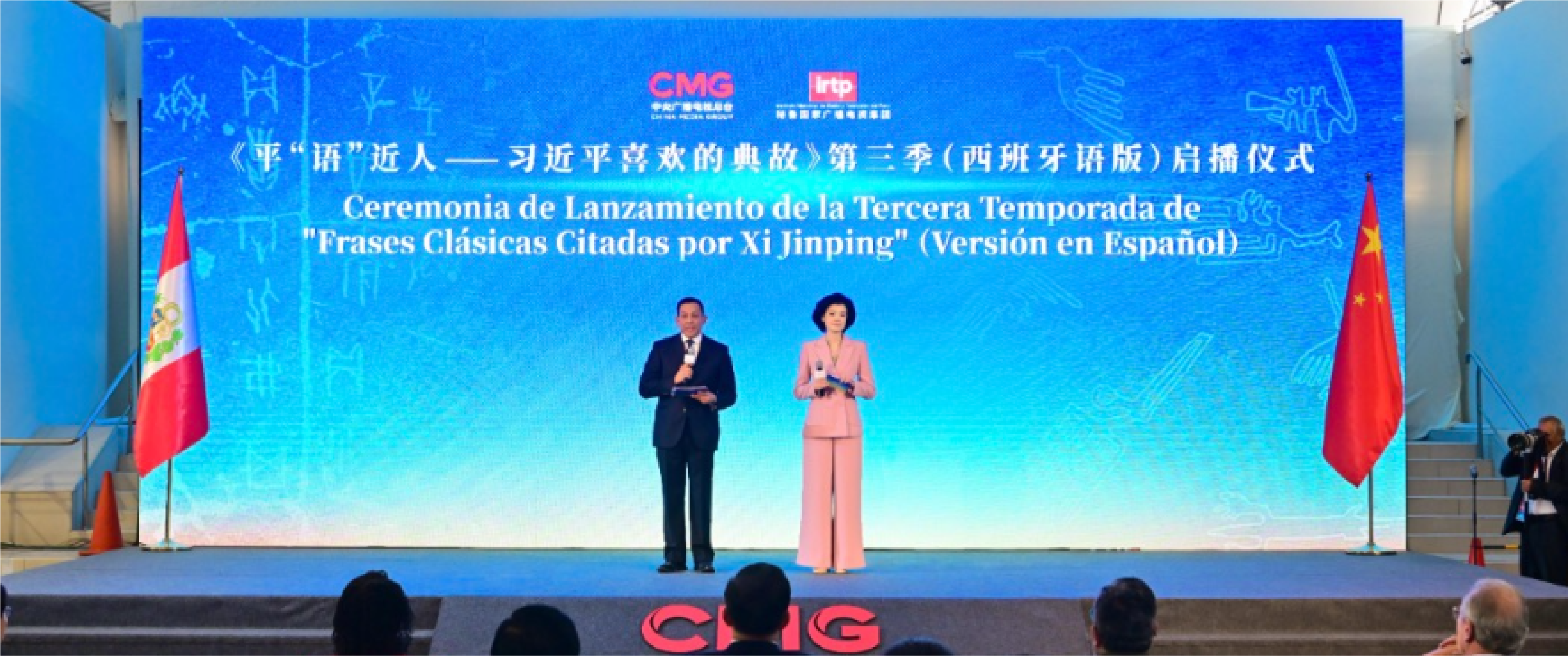 وخلال استضافة العاصمة البيروفية ليما لقمة الأبيك، بث التلفزيون البيروفي باللغة الإسبانية الموسم الثالث من السلسلة الوثائقة “كلاسيكيات اقتبسها شي جين بينغ”. خلال حفل خاص، ورحبت الرئيسة البيروفية دينا بولوارتي عبر رابط الكتروني ببث البرنامج في بيرو. وقالت إن إطلاق البرنامج يعزز مجددا أساس الصداقةِ المتينةِ والطويلةِ الأمد بين البلدين. حضر الحدث نحو مئتي شخصيةٍ ممثلةٍ عن الأوساط السياسية والاقتصادية والثقافية والإعلامية والأكاديمية في بيرو. تركز الوثائقية على موضوعات التراث الثقافي والحضارة الإيكولوجية والتخفيف من حدة الفقر والتبادلات والتعلم المتبادل بين الحضارات، وتعرض اقتباساتٍ من القصص والكلاسيكيات الصينية القديمة التي استخدمها الرئيس الصيني شي جين بينغ في خطاباته ومقالاته، بهدف فهم الحكمة السياسية المتميزة والمعرفة التاريخية والثقافية العميقة للرئيس الصيني. البرنامج من إنتاج مجموعة الصين للإعلام، وتم بثه بالتزامن مع وصول شي جين بينغإلى بيرو في مستهل زيارة دولة، حيث سيحضُر الاجتماع الحادي والثلاثين للقادة الاقتصاديين لمنتدى التعاون الاقتصادي لدول آسيا والمحيط الهادئ.