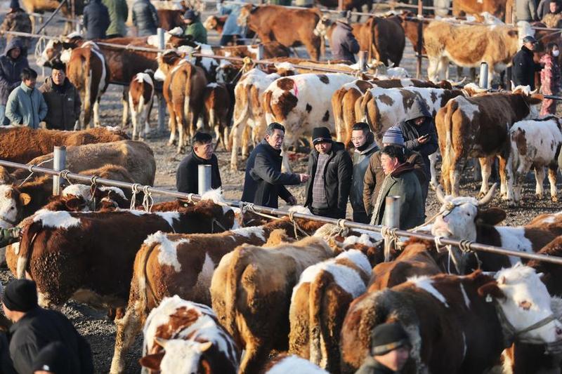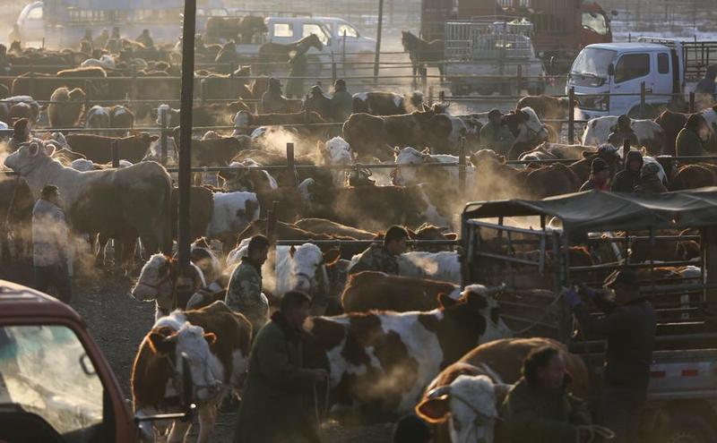 تجارة المواشي في مقاطعة بشمال غربي الصين