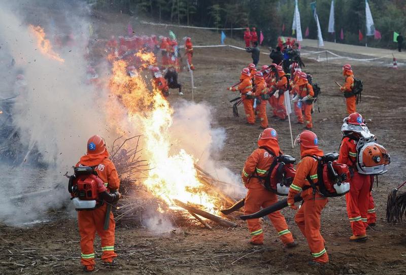 تدريبات إخماد الحرائق في الغابات بشرقي الصين