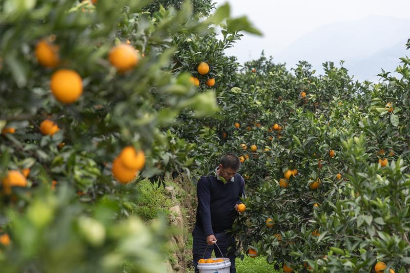 برتقال السرة يدخل موسم الحصاد في محافظة فنغجيه بجنوب غربي الصين