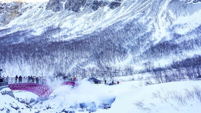 وفي فصل الشتاء، تستقبل منطقة جبال تشانغبايشان في مقاطعة جيلين بشمال شرقي الصين، موسم ذروة سياحة الجليد والثلج، حيث تستقطب السياح بمناظرها المغطاة بالثلوج.