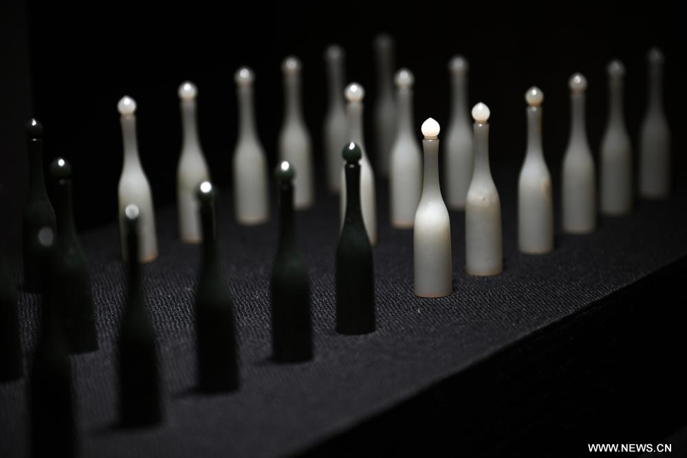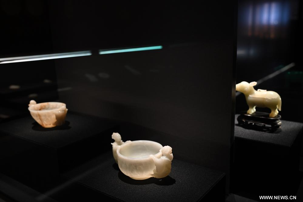 في الصورة الملتقطة قطع أثرية من اليشم في معرض يحمل عنوان “اليشم من جبال كونلون: معرض خاص حول ثقافة يشم خهتيان في بلاط أسرة تشينغ” ويقام في متحف القصر الإمبراطوري بالعاصمة الصينية بكين. ويحتضن المعرض، الذي افتتح هنا يوم الاثنين الماضي، 258 قطعة مصنوعة من يشم خهتيان من بلاط أسرة تشينغ الإمبراطورية.
