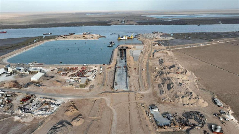 بدأ بالفعل في تشكيل نفق بري، وصفوف من العوامات الصفراء تطفو على الماء في السور البحري، على خور الزبير في أقصى جنوب العراق، المرتبط بمياه الخليج العربي. وتمثل كل عوامة أنبوبًا مغمورًا يبلغ طوله 126 مترًا، وعرضه 35.6 مترًا، ومتوسط ارتفاعه 11 مترًا، ووزنه حوالي 40 ألف طن. قال وو لين، مدير مشروع ميناء الفاو لشركة تيانجين للحفر التابعة لشركة انشاءات الاتصالات الصينية المحدودةCCCC: “بعد الانتهاء من تجريف النهر، ستقوم السفن والمعدات الخاصة بسحب خطوط الأنابيب هذه إلى مواقع محددة، ودفنها تحت الماء وتوصيلها بين بعضها البعض. وفي نهاية المطاف، سيتم إنشاء نفق تحت البحر بطول 2.5 كيلومتر، مكون من ستة مسارات، والذي سيكون أيضًا أول نفق تحت البحر في الشرق الأوسط.