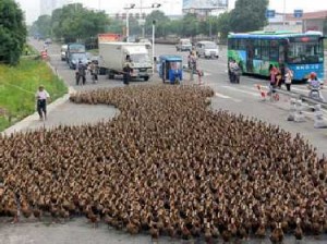 الصين: 5000 بطة تتجول في الشوارع دفعة واحدة