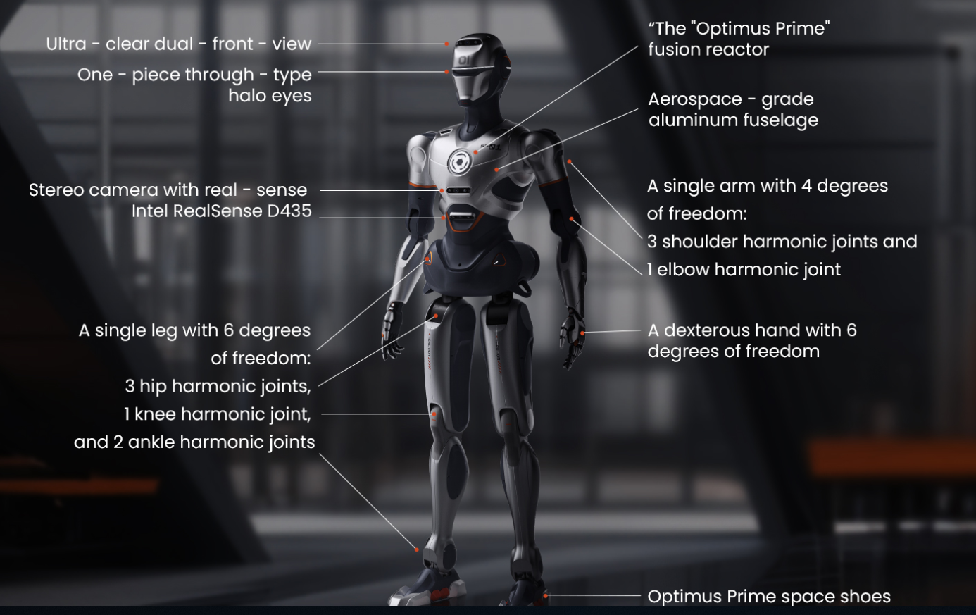وبحسب التقارير، فإن الروبوت البشري SE01 يبلغ من الارتفاع 170 سم، وهو مصنوع من الألومنيوم المستخدم في الطيران، ويزن حوالي 55 كلغ، وله سرعة مشي طبيعية تبلغ 2 متر في الثانية. كما تم تجهيزه ببطارية تصل إلى ساعتين، وعمر خدمة يصل إلى 10 سنوات. ويمكن للروبوت أداء تمارين القرفصاء، والضغط، والمشي في دوائر، والإمساك، والجري والقفز وغيرها من الحركات البشرية.
