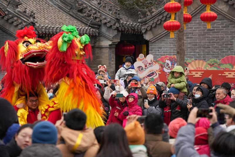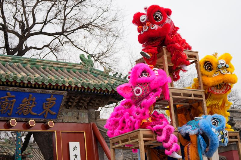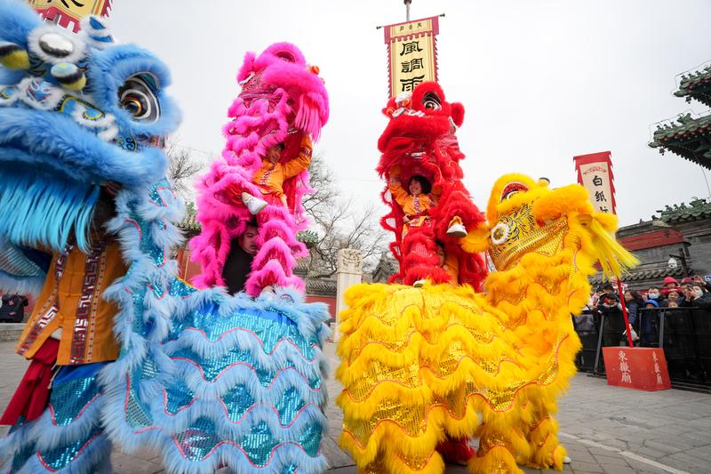 عروض رقصة الأسد احتفالا بعيد الربيع في بكين