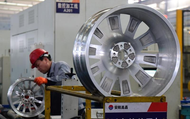أحد أفراد طاقم العمل يباشر عمله في ورشة تابعة لشركة متخصصة في مواد الألومنيوم بمنطقة التنمية الاقتصادية والتكنولوجية لقناة هونغتشي في مدينة لينتشو بمقاطعة خنان في وسط الصين، 19 مارس 2025. (شينخوا)