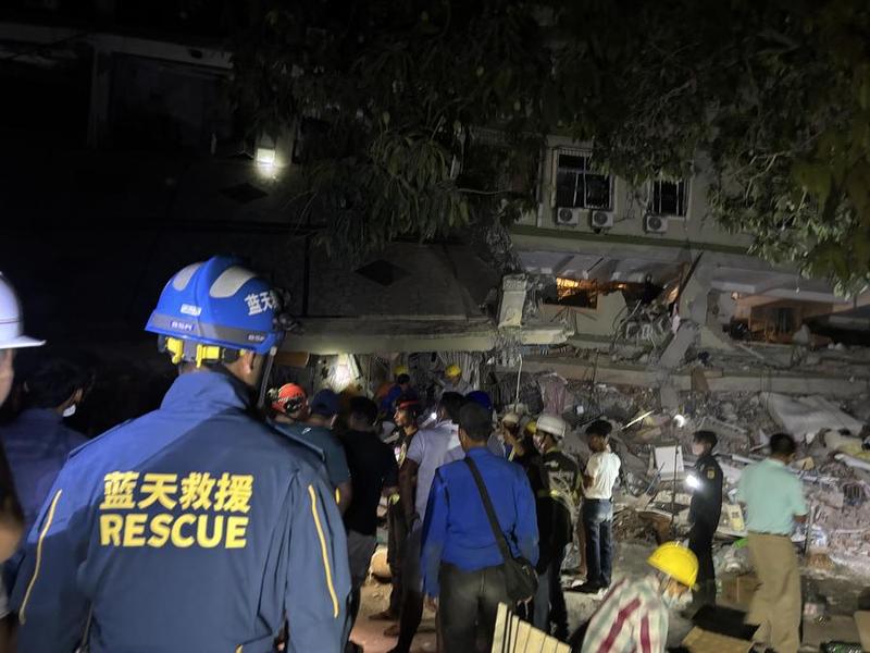 وقد وصلت مجموعة طليعية من فريق السماء الزرقاء للإغاثة الصيني إلى ماندالاي في وقت مبكر من اليوم الأحد، وهي مدينة أخرى تضررت بشدة في ميانمار. ويعكف أعضاء الفريق على تكثيف عمليات الفحص والتقييم المتعلقة بأحد الفنادق المحلية، بالإضافة إلى مواقع أخرى للإغاثة من الكارثة.