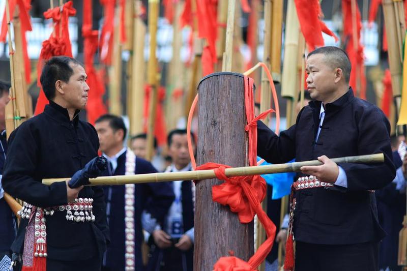 تايجيانغ 13 أبريل 2025 (شينخوا) في الصورة الملتقطة يوم 12 أبريل 2025، مواطنون محليون من قومية مياو في مراسم الاحتفال بعيد الأخوات التقليدي لقومية مياو في محافظة تايجيانغ بمقاطعة قويتشو في جنوب غربي الصين.
