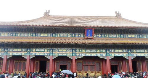 هنا كان الامبراطور يستقبل الرعية والضيوف، وهناك كان يرتدي الملابس الامبراطورية للاستقبالات، وهناك قصر الامبراطورة وفيه من التحف والأواني والأدوات ما يسلب اللبّ، وعلى اليمين واليسار المباني المخصصة للإدارات الحكومية، ففي الصين كان هناك حكومة مركزية قادرة على إبقاء الخيوط الرابطة لعشرات الأقاليم في يد واحدة، هي يد الإمبراطور.