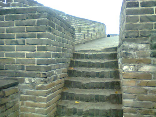 في الأعلى، بعد الوصول إلى الأدراج التي تقودك إلى السور مباشرة، تستشعر هيبة المكان، فهذه المنطقة التي تقف عليها هي جزء من بناء يمتد على طول آلاف الكيلومترات، ويقال إنه المعلم الوحيد الذي بُني بيد الإنسان ويمكن رؤيته من الفضاء.